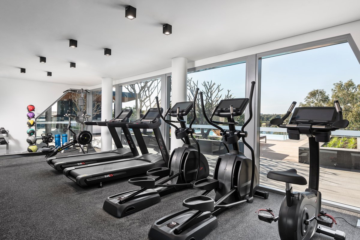 Airconditioned gymnasium, complete with cardio and weights equipment and a fantastic view.